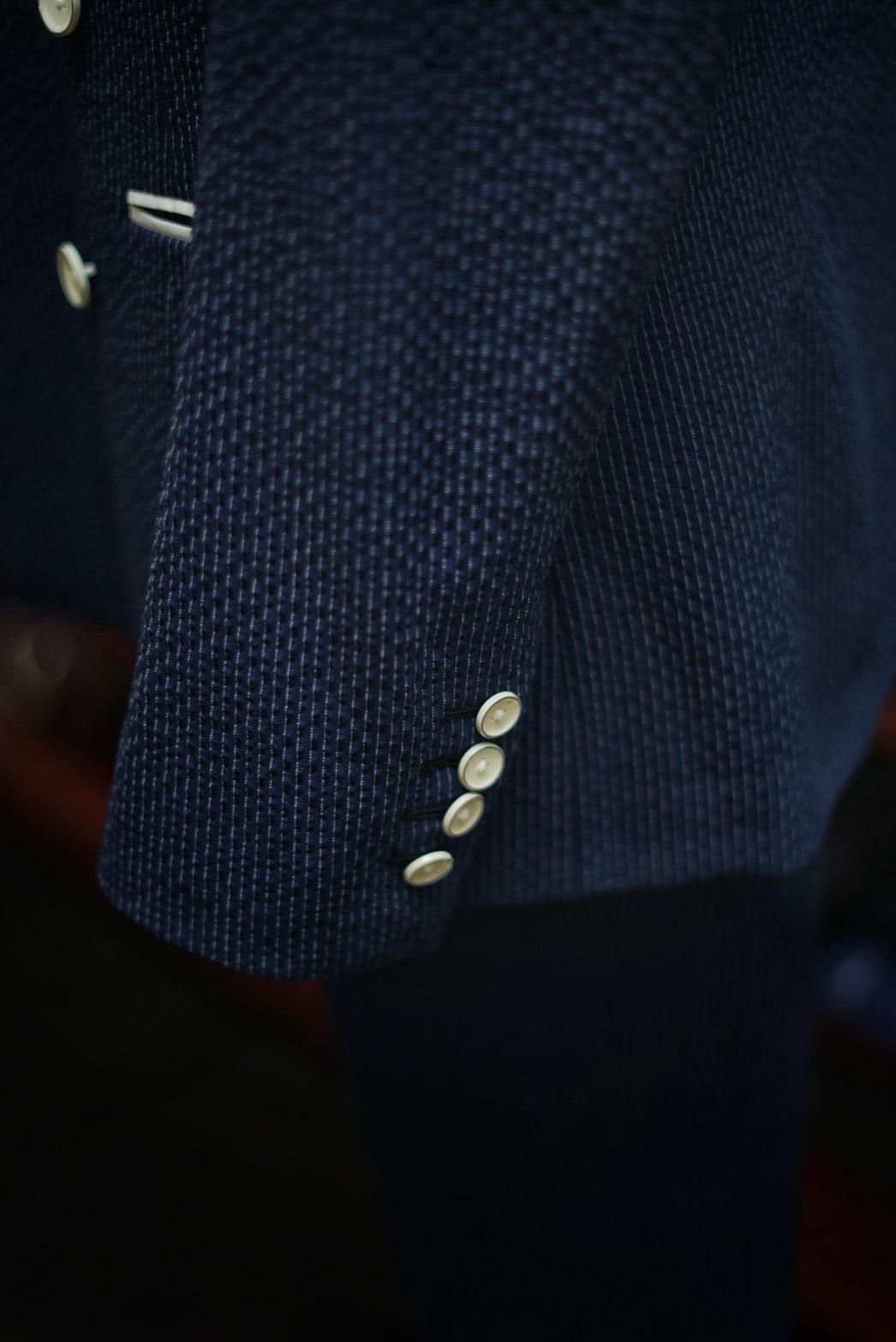 夏の生地としては、代名詞的存在の『サッカー生地』を使用。