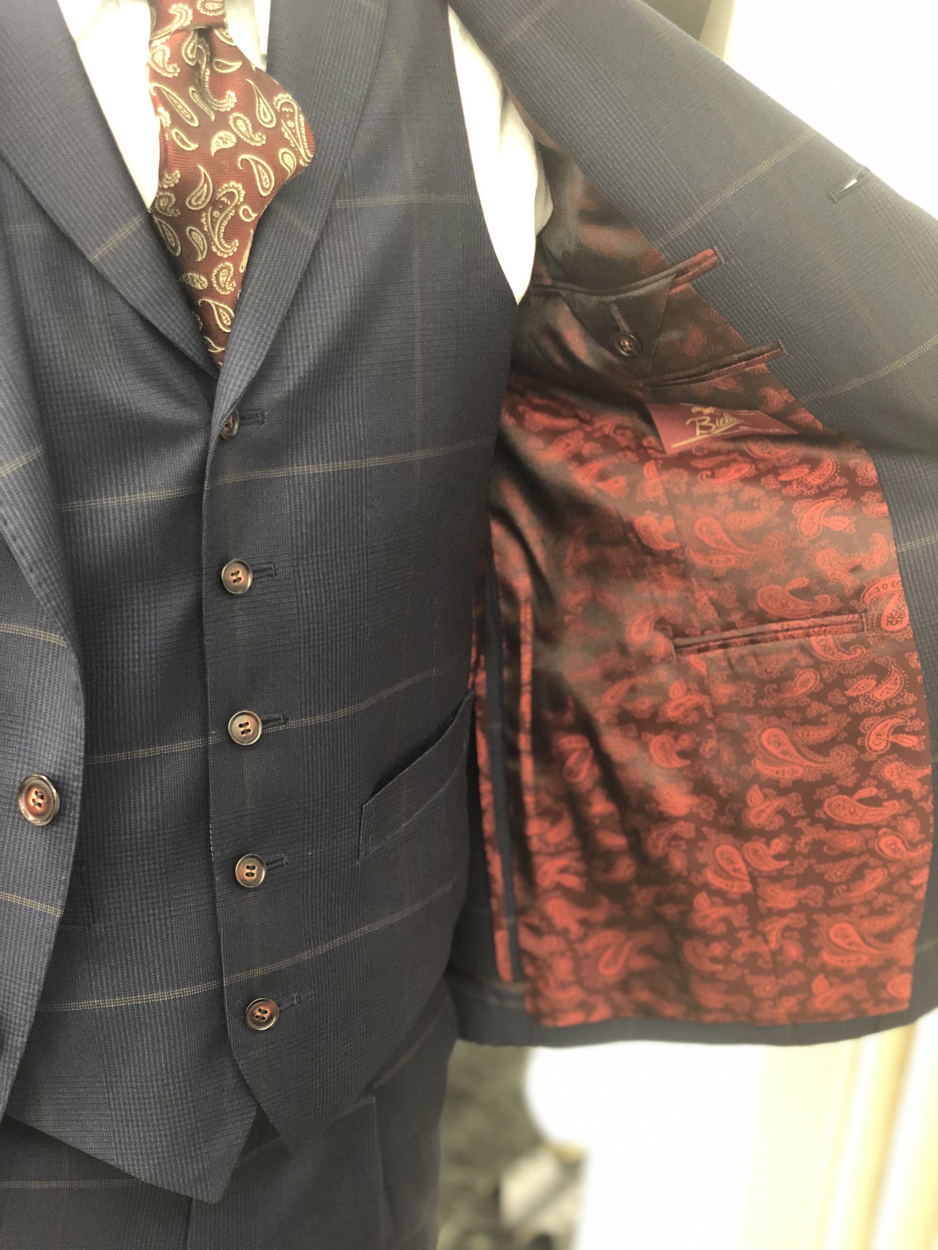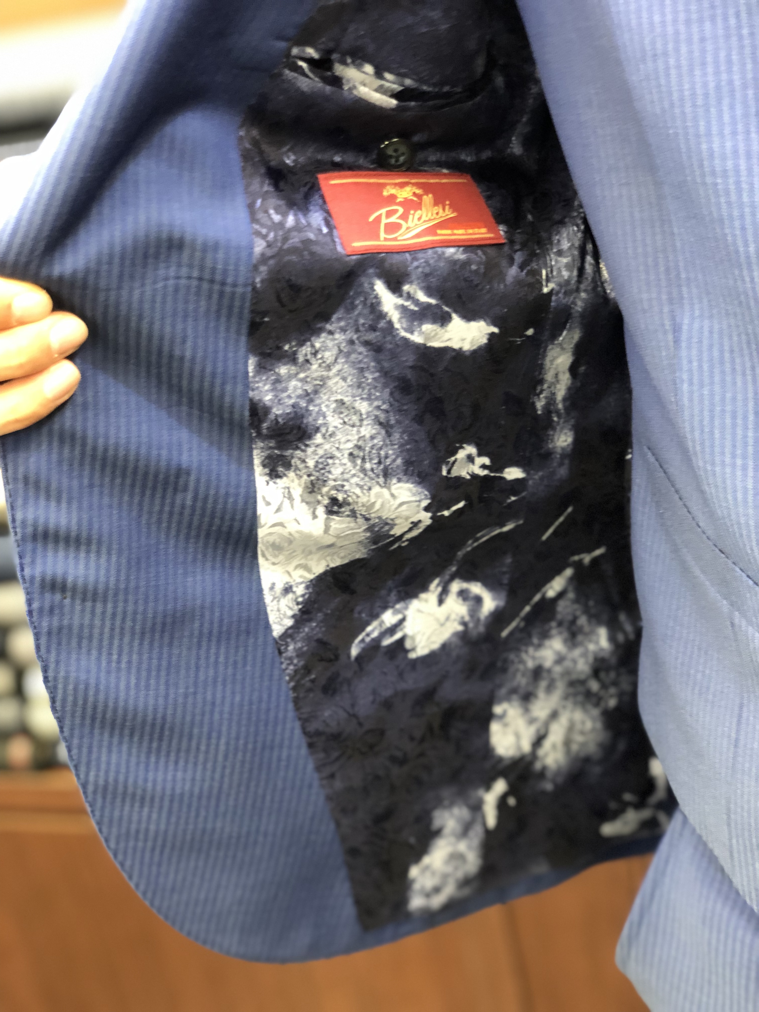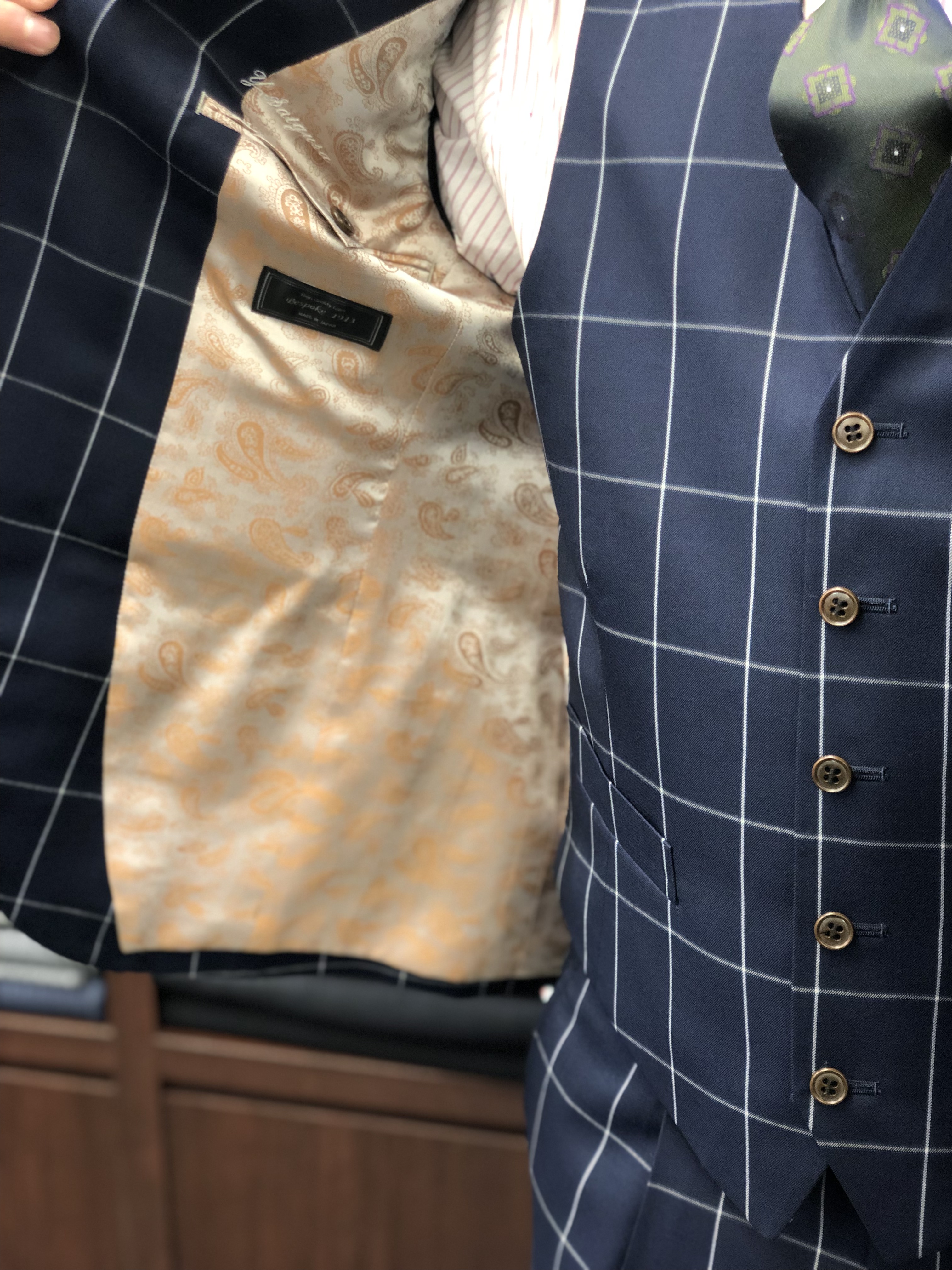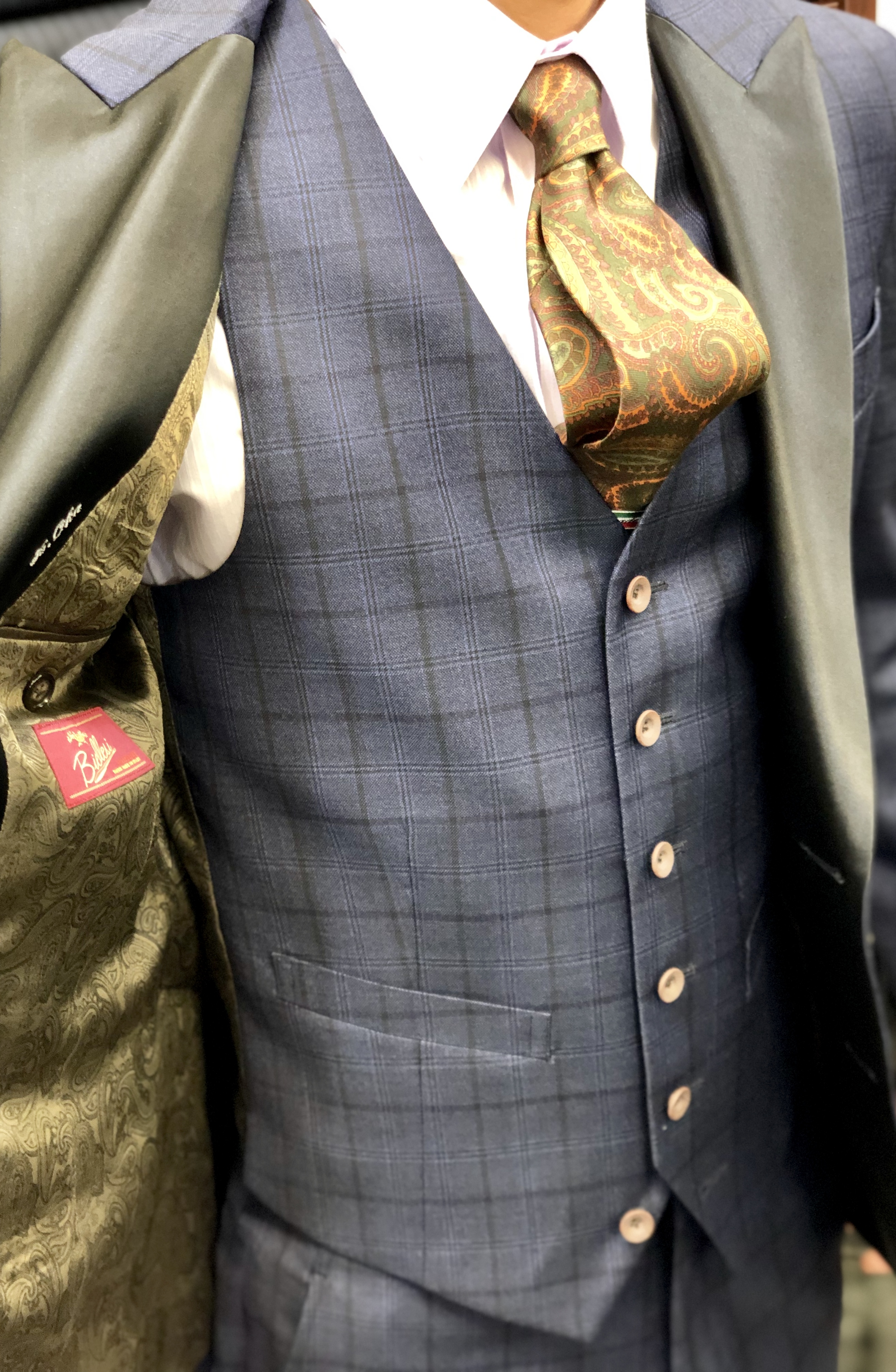 今回の生地はイタリア生地の中でもチェックに定評のあるビエレッシのコレクションの中からお選びいただきました。
