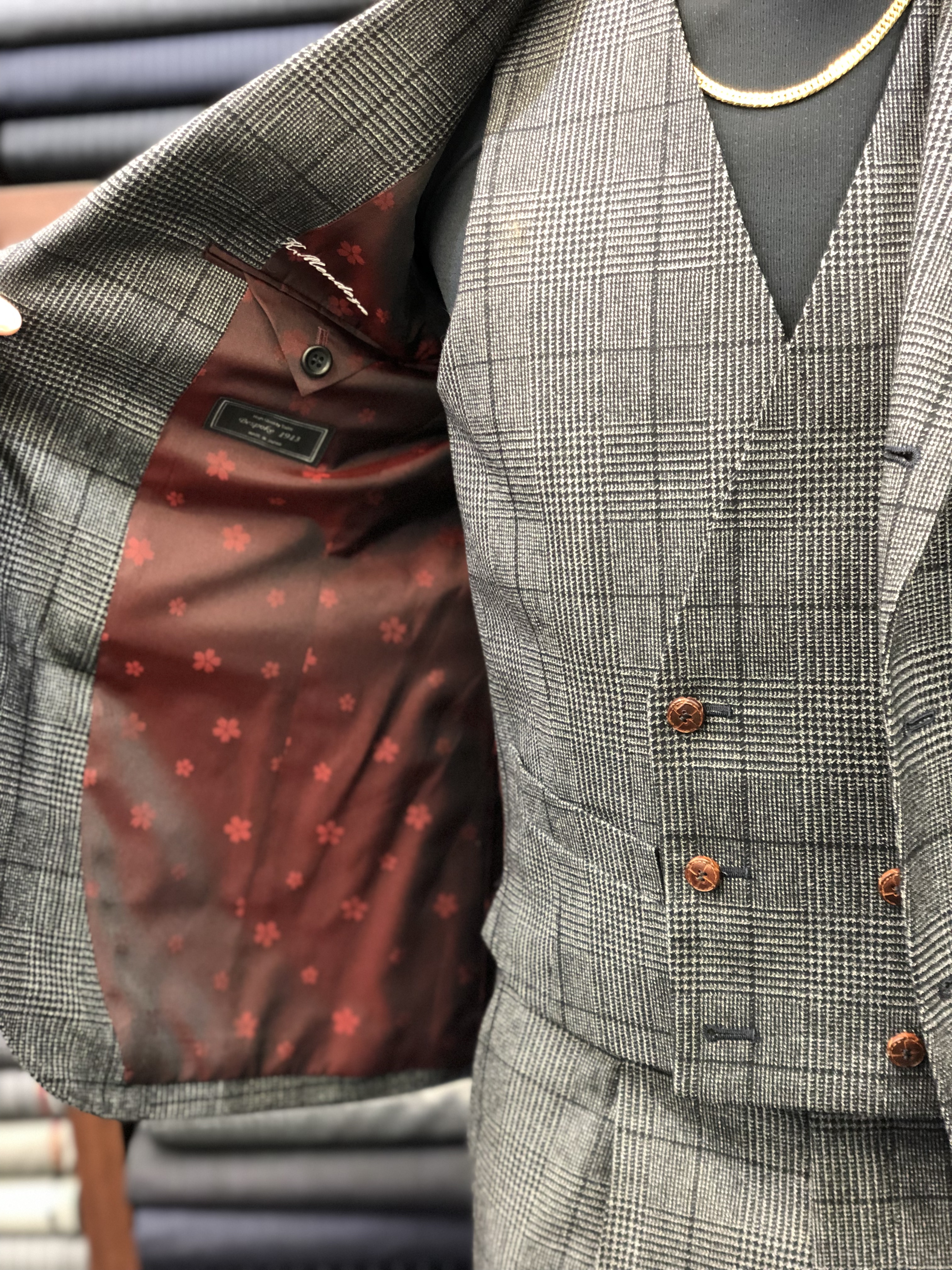こうしたお洒落感の強いチェックはイタリアの生地が本当に強く、たくさんの種類があります。