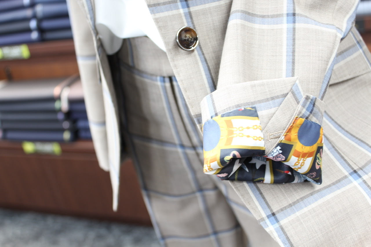 お洒落な色柄が豊富なので、既製服には無いスーツをお仕立ていただけます。