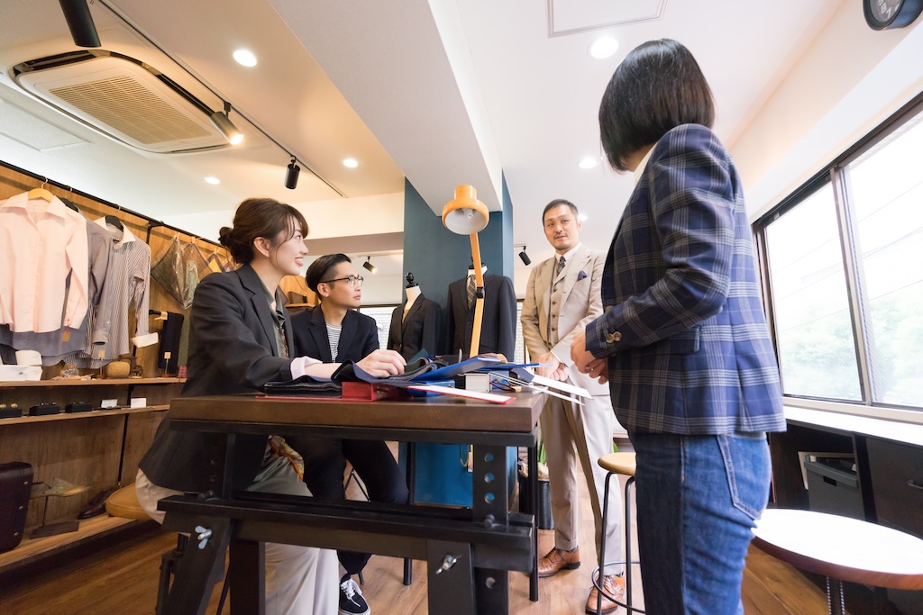 満足屋では初めての方の不安や疑問に丁寧に寄り添い、後悔のない一着作りをお手伝いしています。まずはお気軽にご来店ください。
